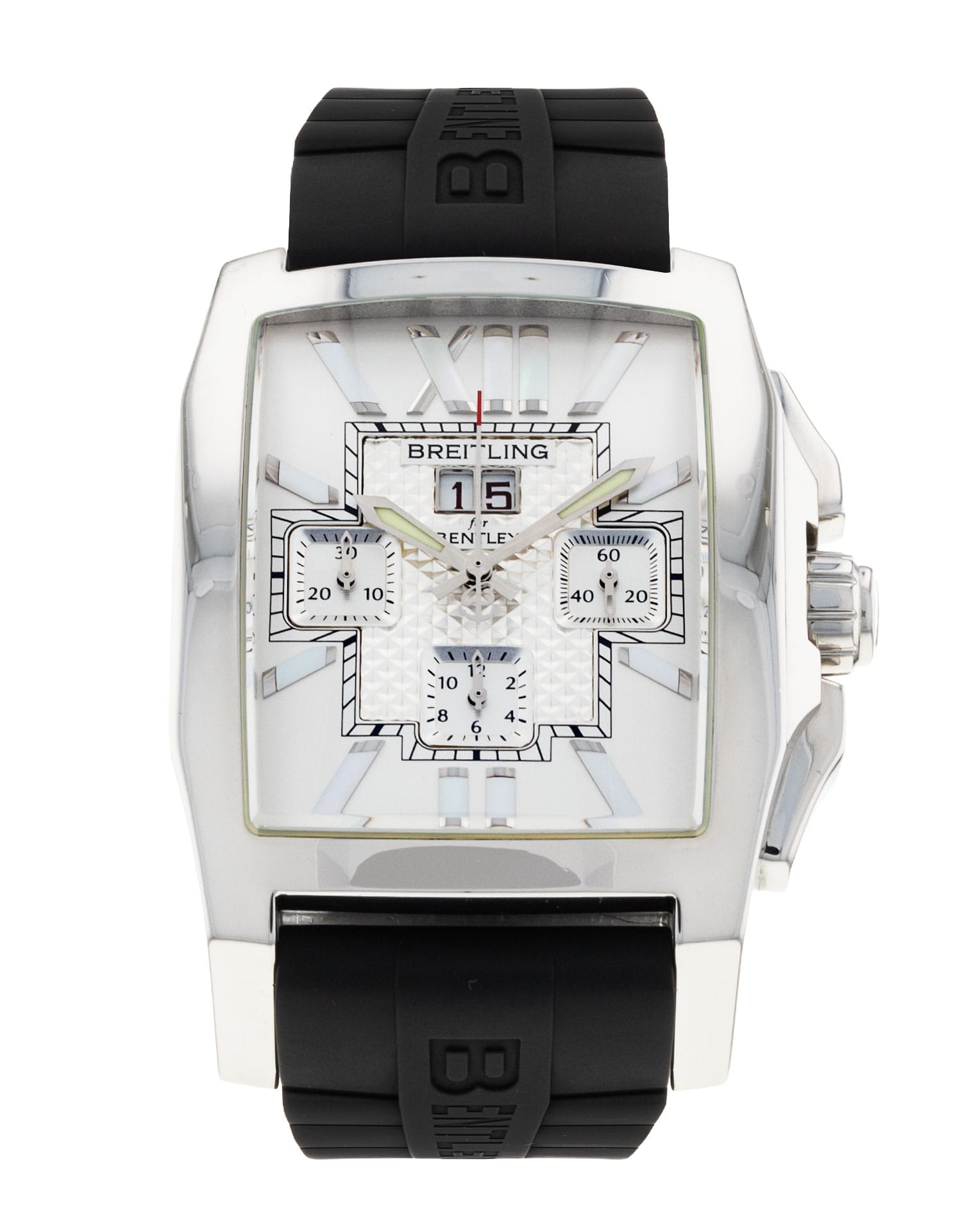 This Breitling Bentley Flying B Chronograph A44365 has a silver dial and a rubber strap. This Breitling has undergone a thorough inspection of water resistance, accuracy, functionality and condition to determine the level of reconditioning required to meet our strict standards. It has also been referenced against technical documents and manufacturer records where available to ensure authenticity and a clean history. All our watches have a 24-month warranty for your peace of mind.