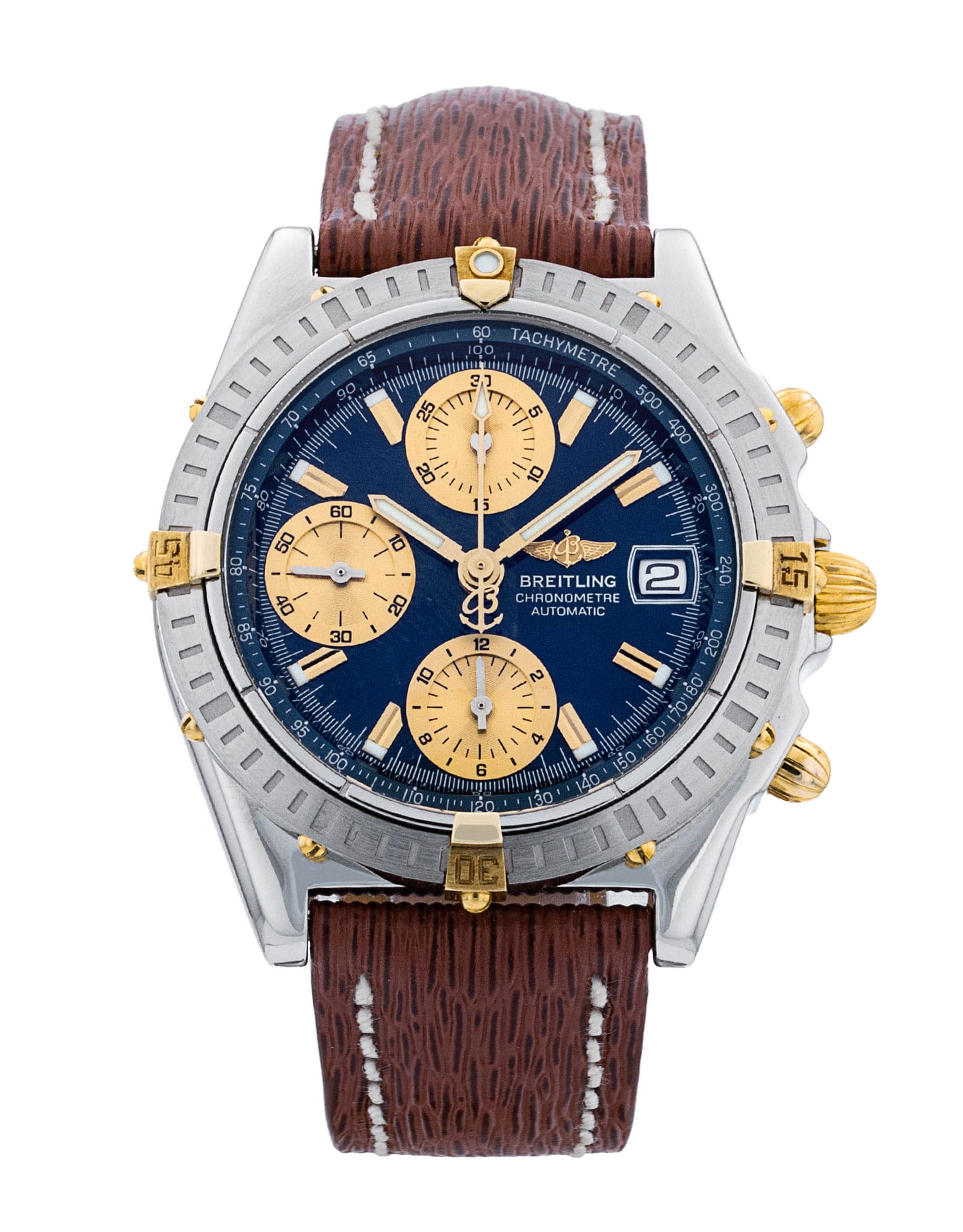 This Breitling Chronomat B13352 has a blue baton dial and a leather strap. This Breitling has undergone a thorough inspection of water resistance, accuracy, functionality and condition to determine the level of reconditioning required to meet our strict standards. It has also been referenced against technical documents and manufacturer records where available to ensure authenticity and a clean history. All our watches have a 24-month warranty for your peace of mind.