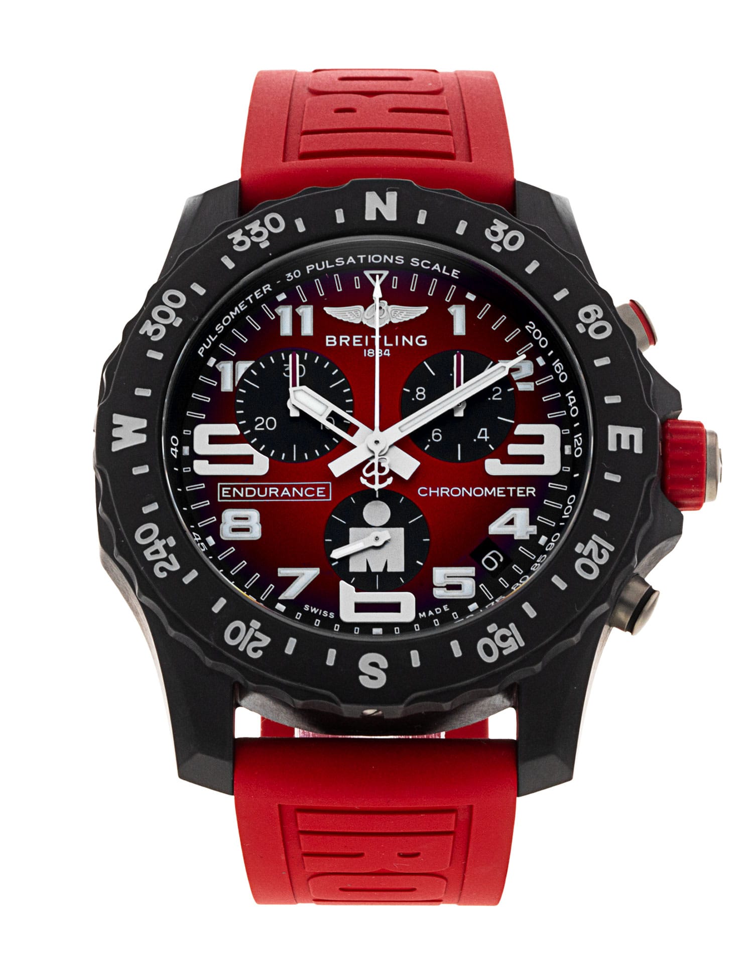 This Breitling Endurance Pro X82310 has a red arabic dial and a rubber strap. This Breitling has undergone a thorough inspection of water resistance, accuracy, functionality and condition to determine the level of reconditioning required to meet our strict standards. It has also been referenced against technical documents and manufacturer records where available to ensure authenticity and a clean history. Our watches have a 24-month warranty for your peace of mind, in conjunction with any remaining manufacturer’s warranty from new or from service.
