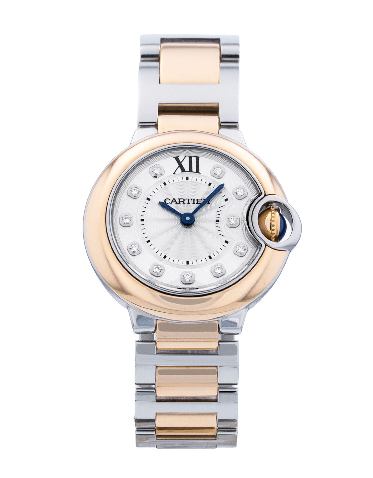 This Cartier Ballon Bleu W3BB0005 has a silver diamond dial and a bracelet strap. This Cartier has undergone a thorough inspection of accuracy, functionality and condition at our Cartier certified service centre to determine the level of reconditioning required to meet our strict standards. It has also been checked against our records to ensure authenticity. All our watches have a 24-month warranty for your peace of mind.