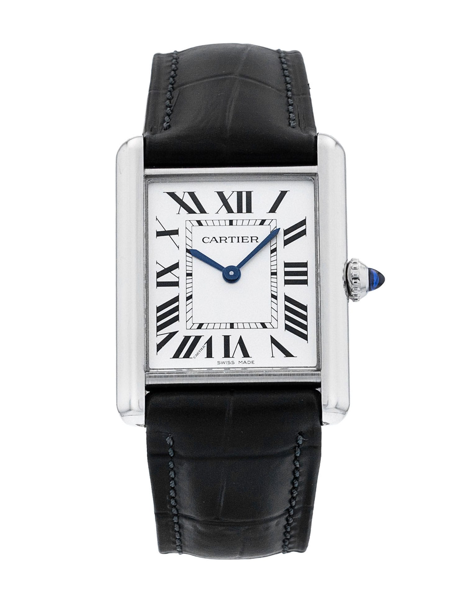 This Cartier Tank Must WSTA0041 has a silver roman numeral dial and a leather strap. This Cartier has undergone a thorough inspection of accuracy, functionality and condition at our Cartier certified service centre to determine the level of reconditioning required to meet our strict standards. It has also been checked against our records to ensure authenticity. All our watches have a 24-month warranty for your peace of mind.
