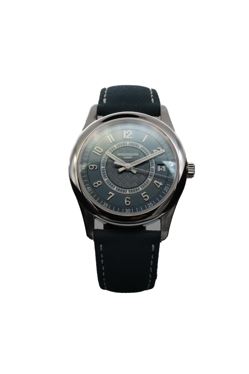 This Patek Philippe Calatrava 6007A-001 has a blue arabic dial and a fabric strap. This Patek Philippe has undergone a thorough inspection of water resistance, accuracy, functionality and condition to determine the level of reconditioning required to meet our strict standards. It has also been referenced against technical documents and manufacturer records where available to ensure authenticity and a clean history. All our watches have a 24-month warranty for your peace of mind.