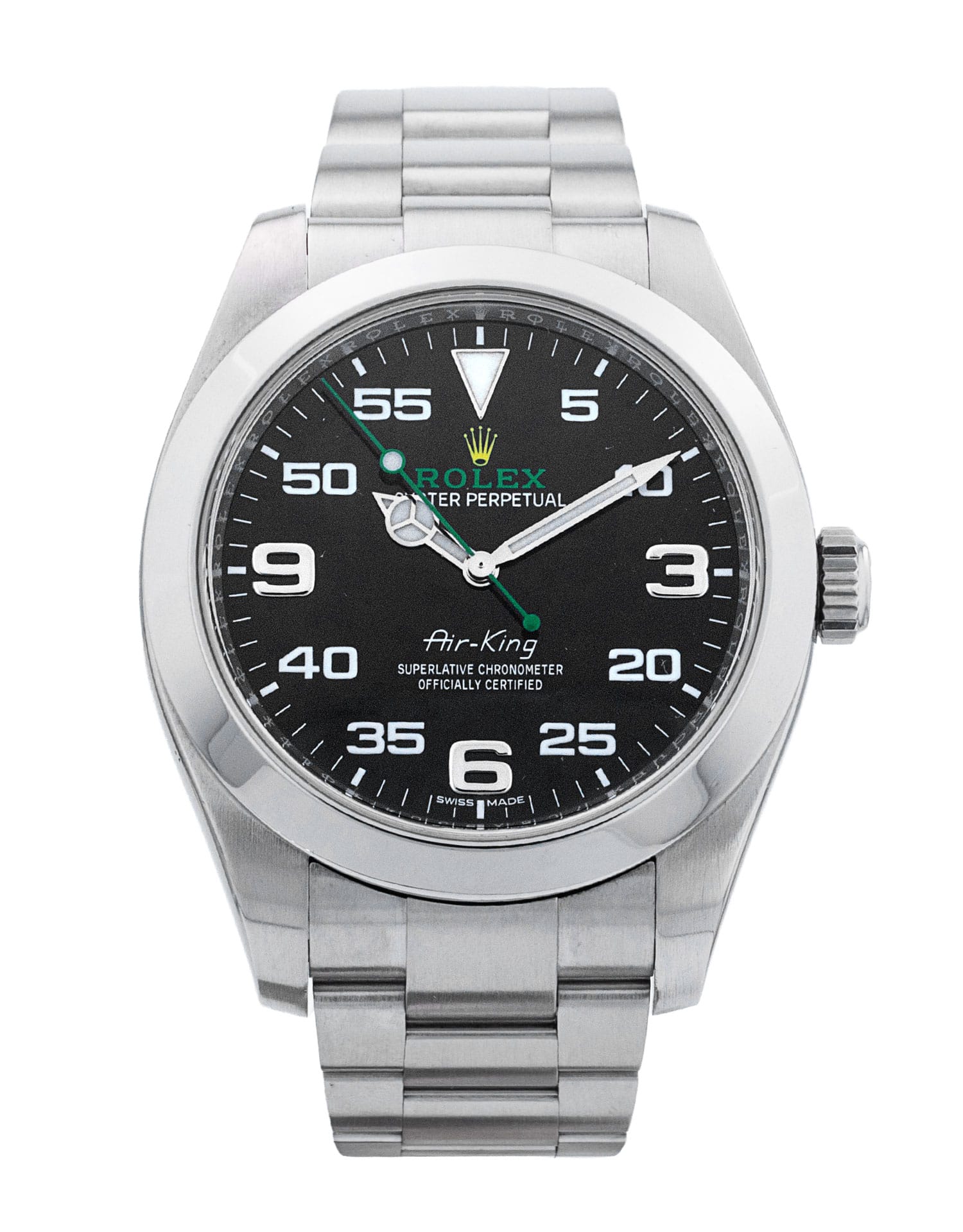This Rolex Air-King 116900 has a black arabic dial and a bracelet strap. This Rolex has undergone a thorough inspection of water resistance, accuracy, functionality and condition to determine the level of reconditioning required to meet our strict standards. It has also been referenced against technical documents and manufacturer records where available to ensure authenticity and a clean history. All our watches have a 24-month warranty for your peace of mind. One of our skilled polishing technicians has removed marks on the case and bracelet of this watch, brought about by daily wear and tear, which is why this watch does not come with the remaining manufacturer’s warranty.