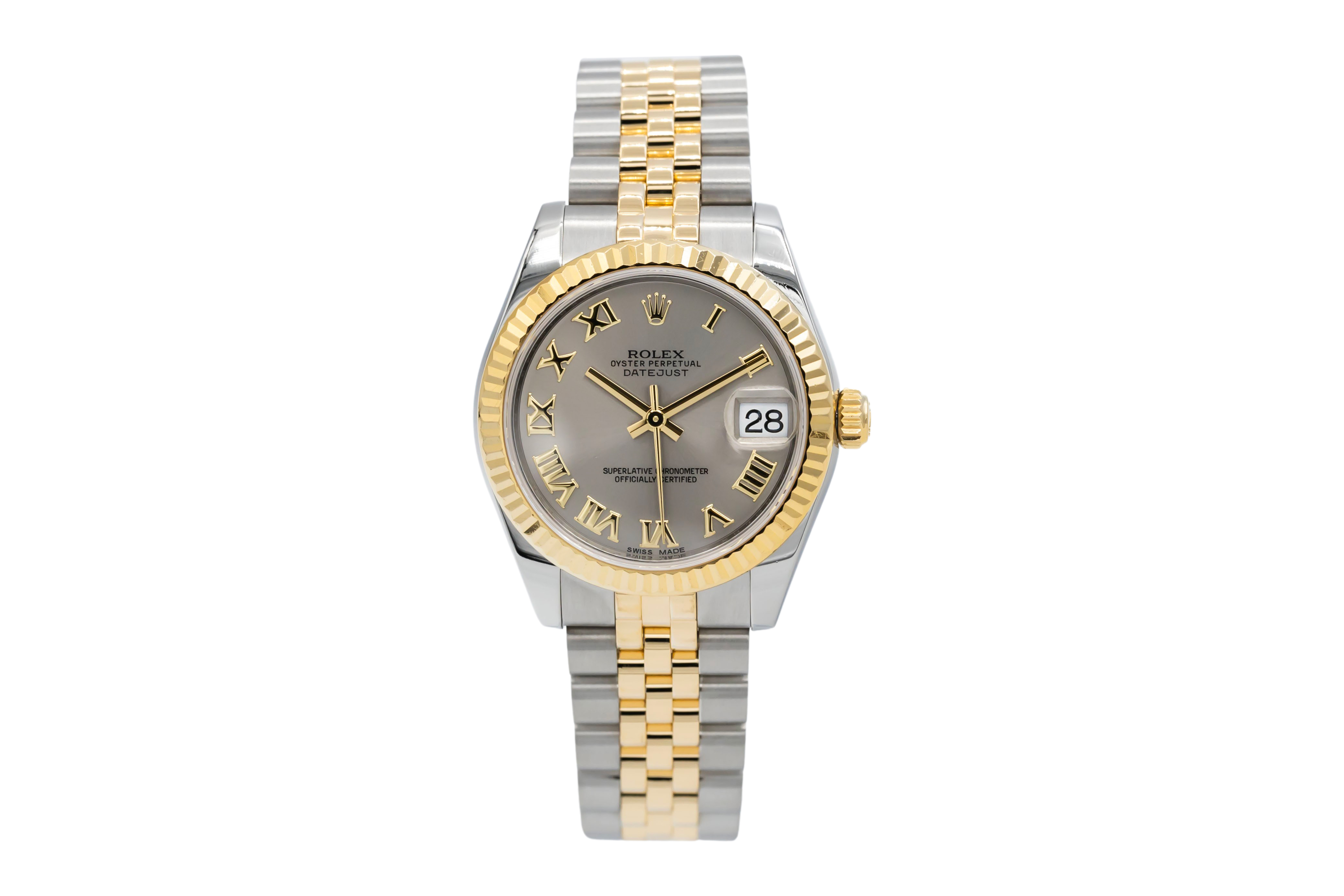 This Rolex Datejust Lady 31 178273 has a rhodium roman numeral dial and a bracelet strap. This Rolex has undergone a thorough inspection of water resistance, accuracy, functionality and condition to determine the level of reconditioning required to meet our strict standards. It has also been referenced against technical documents and manufacturer records where available to ensure authenticity and a clean history. All our watches have a 24-month warranty for your peace of mind. One of our skilled polishing technicians has removed marks on the case and bracelet of this watch, brought about by daily wear and tear, which is why this watch does not come with the remaining manufacturer’s warranty.