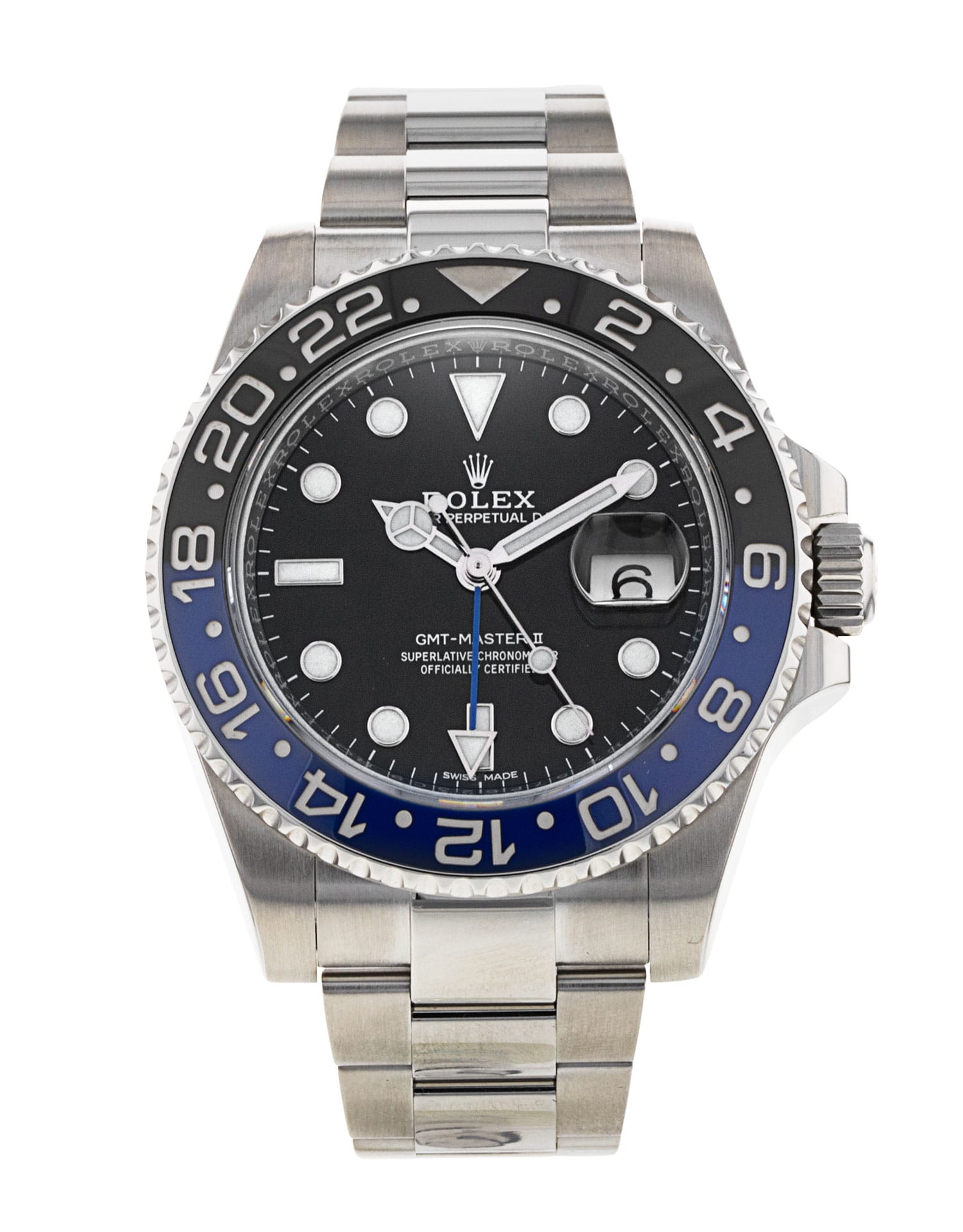 This Rolex GMT Master II 116710 BLNR has a black dial and a bracelet strap. This Rolex has undergone a thorough inspection of water resistance, accuracy, functionality and condition to determine the level of reconditioning required to meet our strict standards. It has also been referenced against technical documents and manufacturer records where available to ensure authenticity and a clean history. All our watches have a 24-month warranty for your peace of mind. One of our skilled polishing technicians has removed marks on the case and bracelet of this watch, brought about by daily wear and tear, which is why this watch does not come with the remaining manufacturer’s warranty.