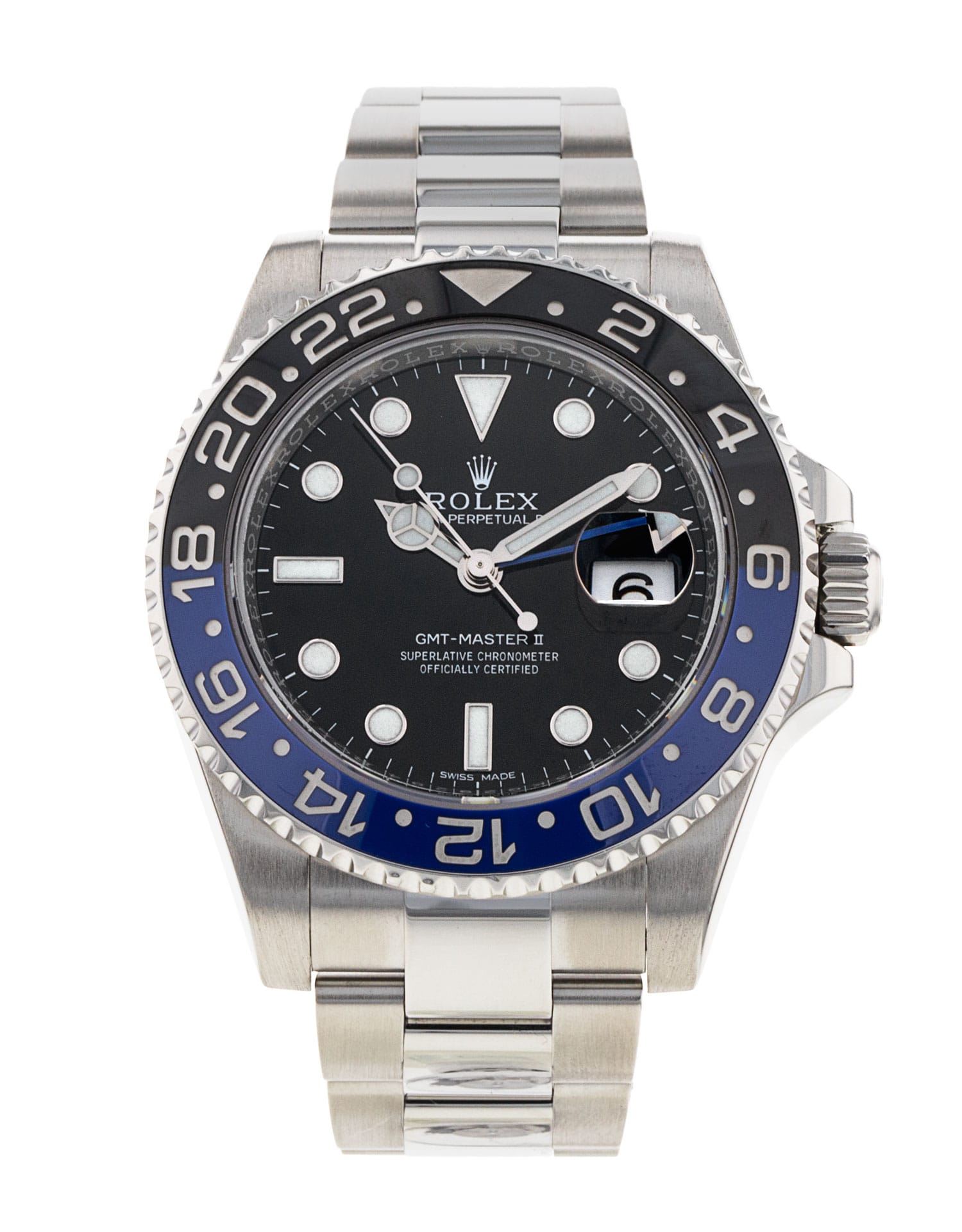 This Rolex GMT Master II 116710 BLNR has a black dial and a bracelet strap. This Rolex has undergone a thorough inspection of water resistance, accuracy, functionality and condition to determine the level of reconditioning required to meet our strict standards. It has also been referenced against technical documents and manufacturer records where available to ensure authenticity and a clean history. All our watches have a 24-month warranty for your peace of mind. One of our skilled polishing technicians has removed marks on the case and bracelet of this watch, brought about by daily wear and tear, which is why this watch does not come with the remaining manufacturer’s warranty.