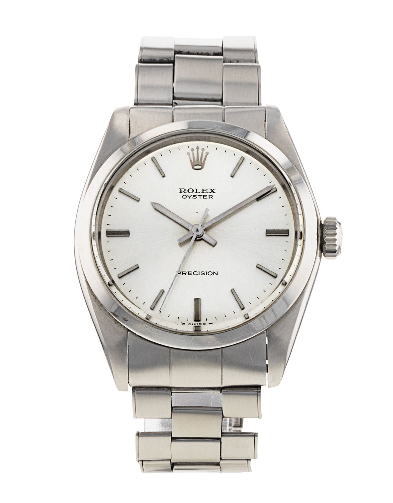 This Rolex Oyster Precision 6426 has a silver baton dial and a bracelet strap. Due to age, this Rolex may not fall within our typical expected tolerances for timekeeping, and is no longer suitable for use in wet environments or submersion in water. In the interests of preserving original features, utmost care has been taken to sympathetically restore this watch. It has also been referenced against technical documents and manufacturer records where available to ensure authenticity and a clean history. One of our skilled polishing technicians has removed marks on the case and bracelet of this watch, brought about by daily wear and tear, which is why this watch does not come with the remaining manufacturer’s warranty.