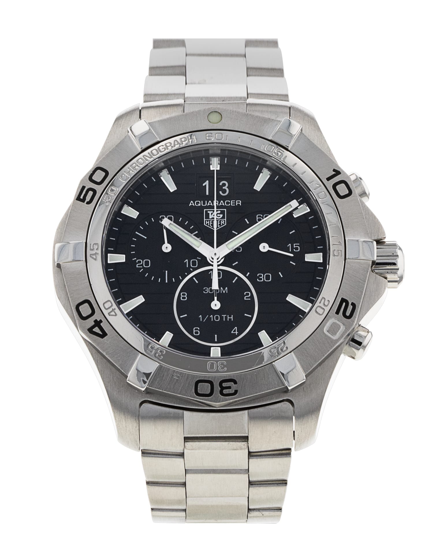 This Tag Heuer Aquaracer CAF101E.BA0821 has a black baton dial and a bracelet strap. This Tag Heuer has undergone a thorough inspection of accuracy, functionality and condition at our Tag Heuer certified service centre to determine the level of reconditioning required to meet our strict standards. It has also been checked against our records to ensure authenticity. All our watches have a 24-month warranty for your peace of mind.