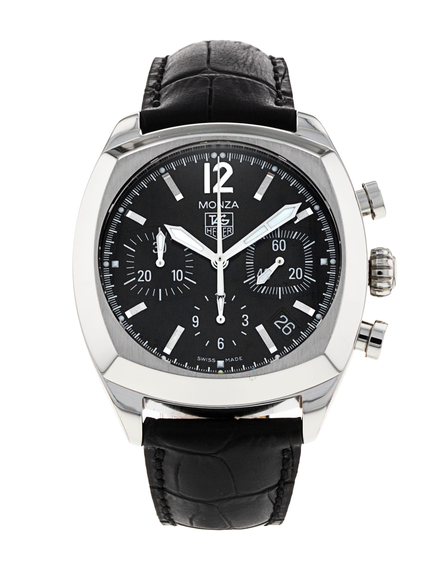 This Tag Heuer Classic Monza CR2113.FC6165 has a black baton dial and a leather strap. This Tag Heuer has undergone a thorough inspection of accuracy, functionality and condition at our Tag Heuer certified service centre to determine the level of reconditioning required to meet our strict standards. It has also been checked against our records to ensure authenticity. Our watches have a 24-month warranty for your peace of mind, in conjunction with any remaining manufacturer’s warranty from new or from service.