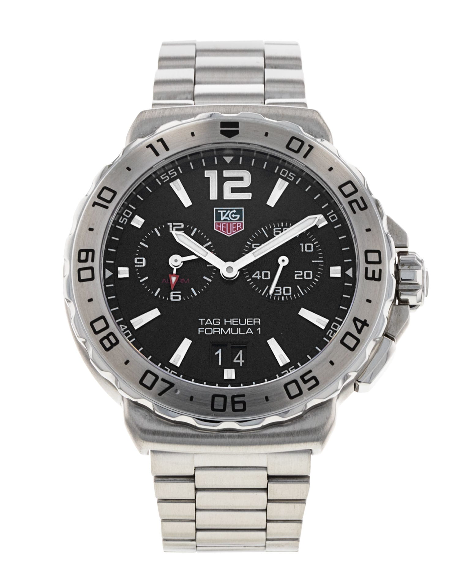 This Tag Heuer Formula 1 WAU111A.BA0858 has a black baton dial and a bracelet strap. This Tag Heuer has undergone a thorough inspection of accuracy, functionality and condition at our Tag Heuer certified service centre to determine the level of reconditioning required to meet our strict standards. It has also been checked against our records to ensure authenticity. All our watches have a 24-month warranty for your peace of mind.
