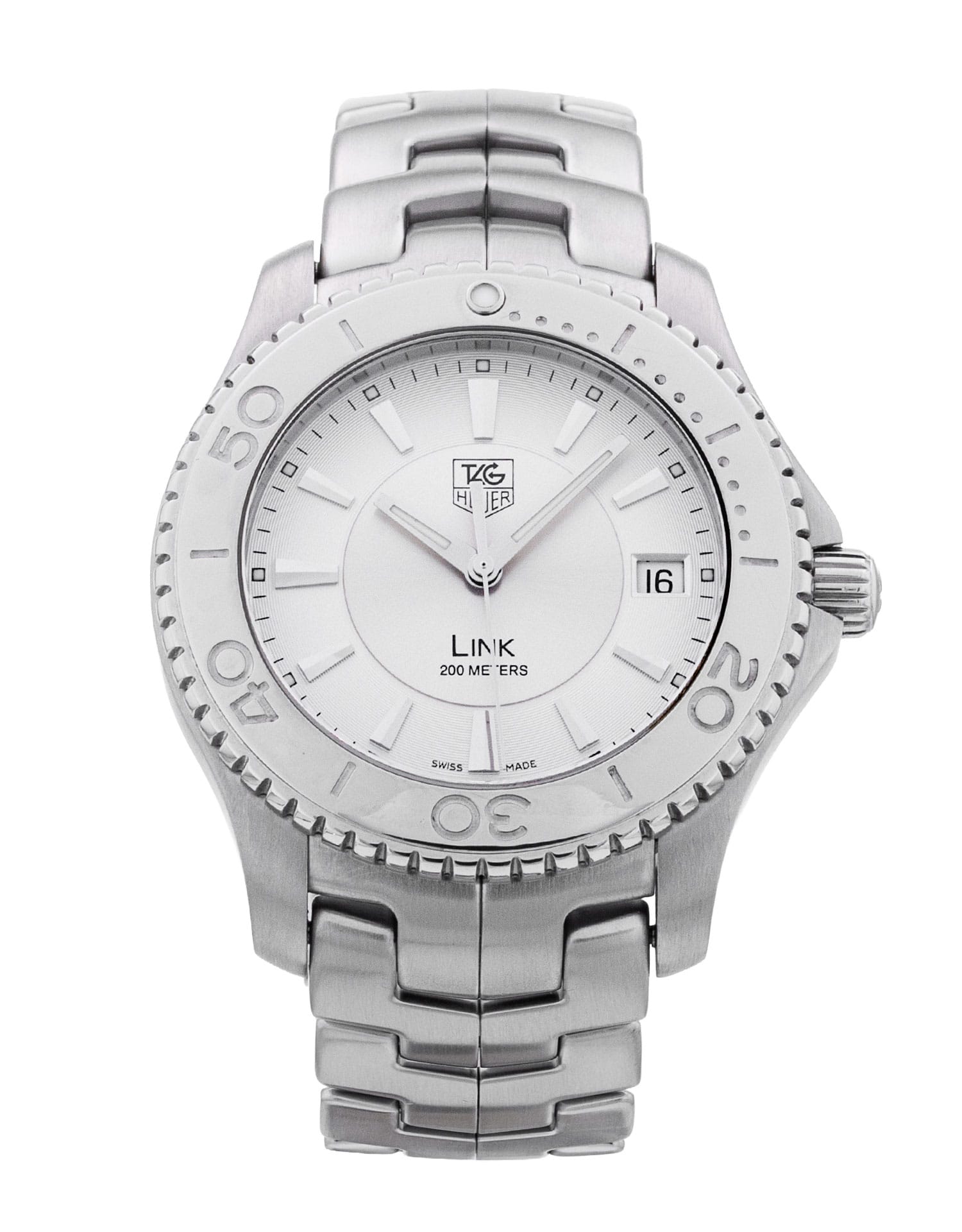 This Tag Heuer Link WJ1111.BA0570 has a silver baton dial and a bracelet strap. This Tag Heuer has undergone a thorough inspection of accuracy, functionality and condition at our Tag Heuer certified service centre to determine the level of reconditioning required to meet our strict standards. It has also been checked against our records to ensure authenticity. All our watches have a 24-month warranty for your peace of mind.
