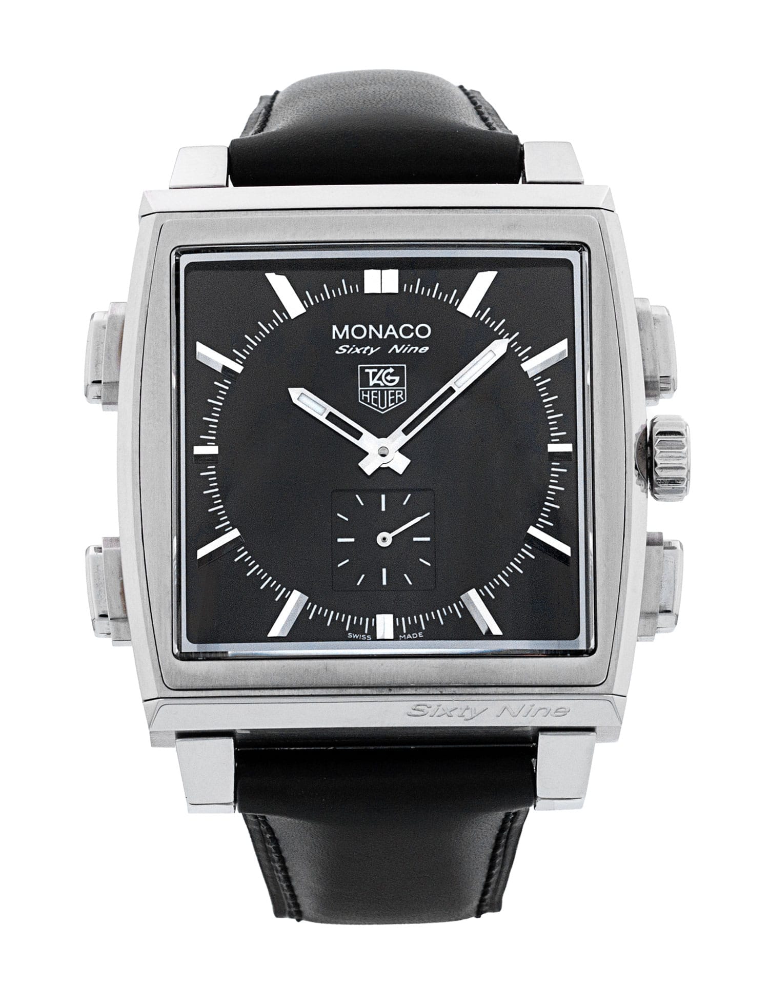 This Tag Heuer Monaco CW9110 has a black baton dial and a leather strap. This Tag Heuer has undergone a thorough inspection of accuracy, functionality and condition at our Tag Heuer certified service centre to determine the level of reconditioning required to meet our strict standards. It has also been checked against our records to ensure authenticity. All our watches have a 24-month warranty for your peace of mind.