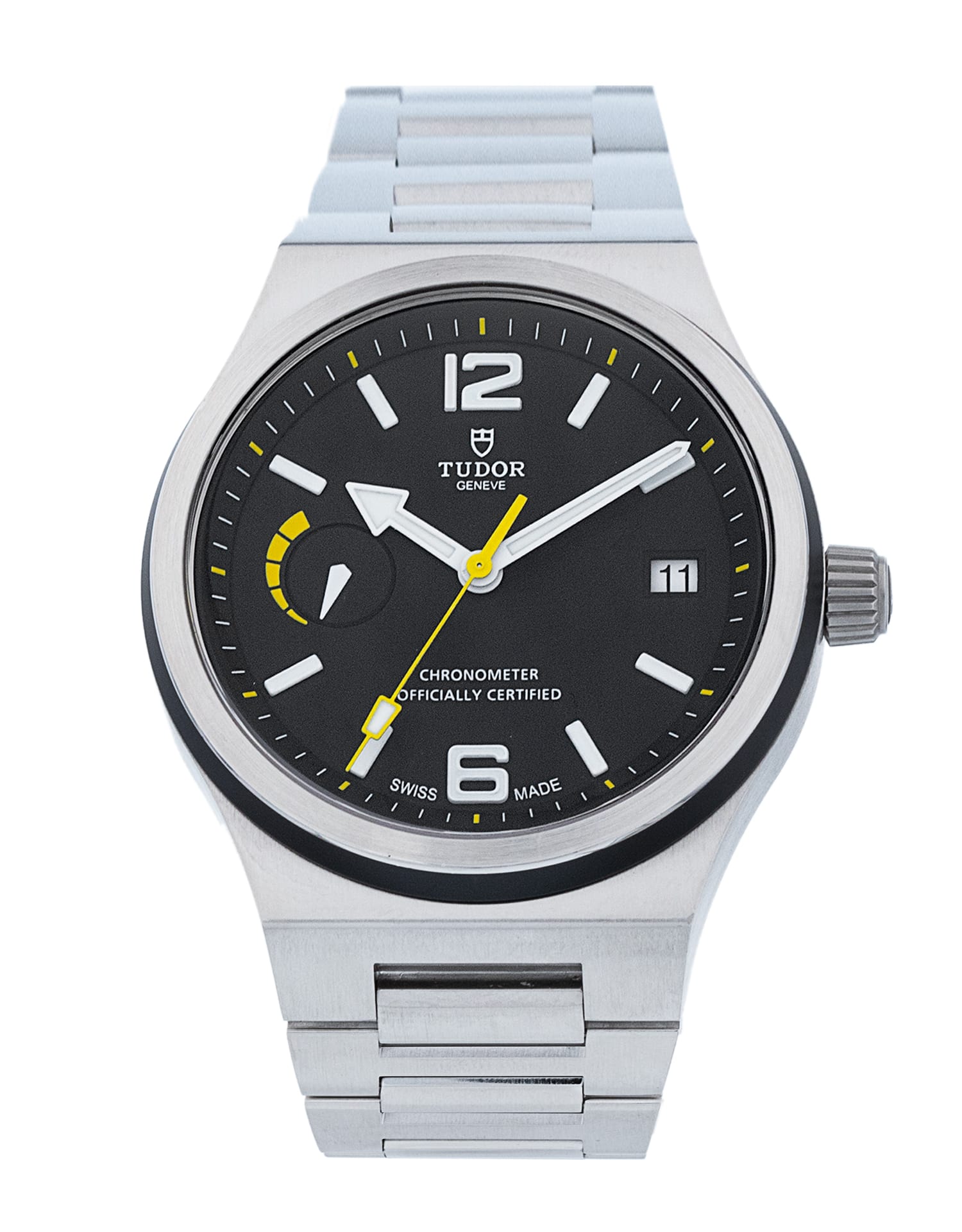 This Tudor North Flag M91210N-0001 has a black dial and a bracelet strap. This Tudor has undergone a thorough inspection of water resistance, accuracy, functionality and condition to determine the level of reconditioning required to meet our strict standards. It has also been referenced against technical documents and manufacturer records where available to ensure authenticity and a clean history. All our watches have a 24-month warranty for your peace of mind. One of our skilled polishing technicians has removed marks on the case and bracelet of this watch, brought about by daily wear and tear, which is why this watch does not come with the remaining manufacturer’s warranty.