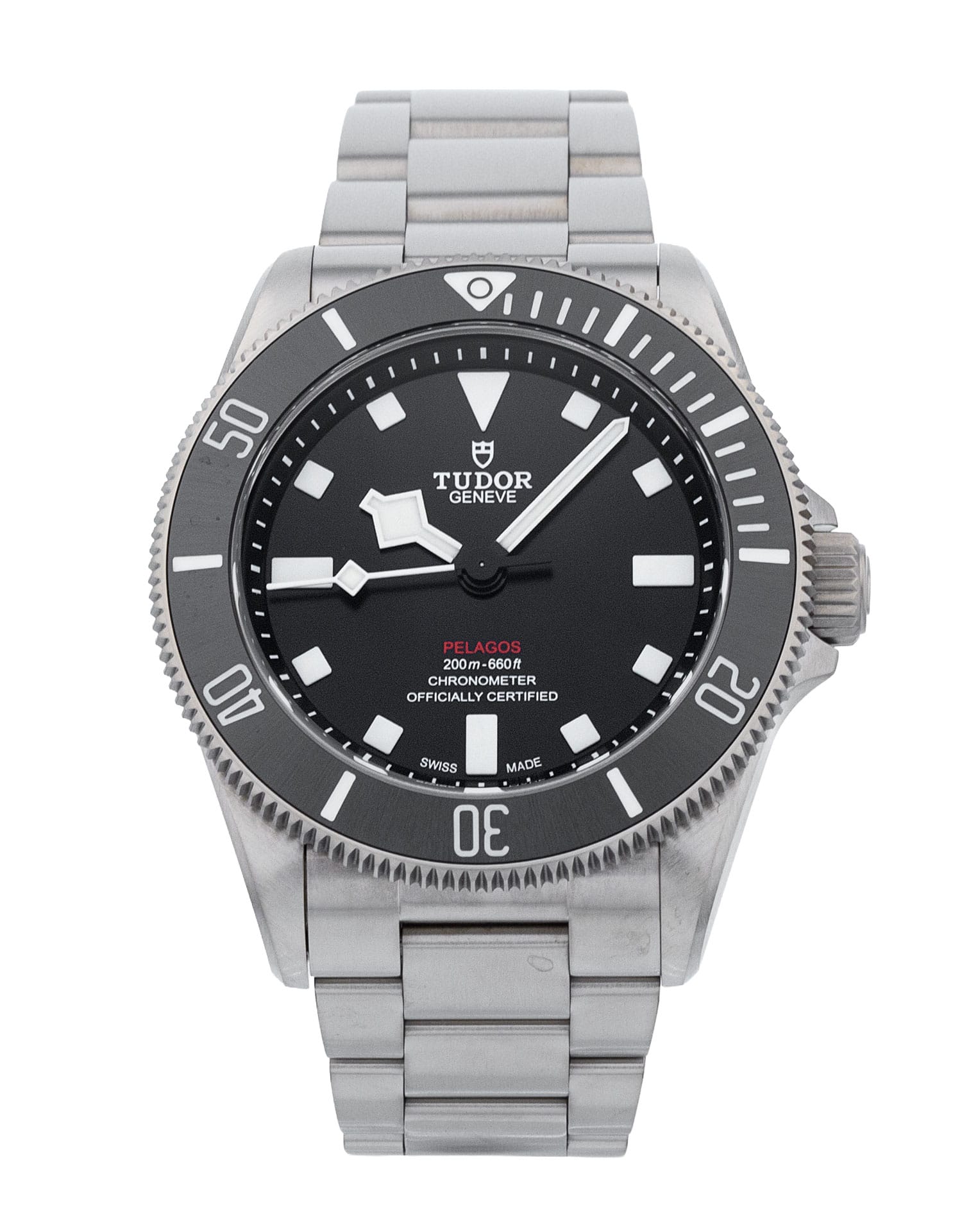 This Tudor Pelagos M25407N-0001 has a black dial and a bracelet strap. This Tudor has undergone a thorough inspection of water resistance, accuracy, functionality and condition to determine the level of reconditioning required to meet our strict standards. It has also been referenced against technical documents and manufacturer records where available to ensure authenticity and a clean history. Our watches have a 24-month warranty for your peace of mind, in conjunction with any remaining manufacturer’s warranty from new or from service. To maintain the manufacturer’s warranty on this watch, it has not been polished in our service centre.