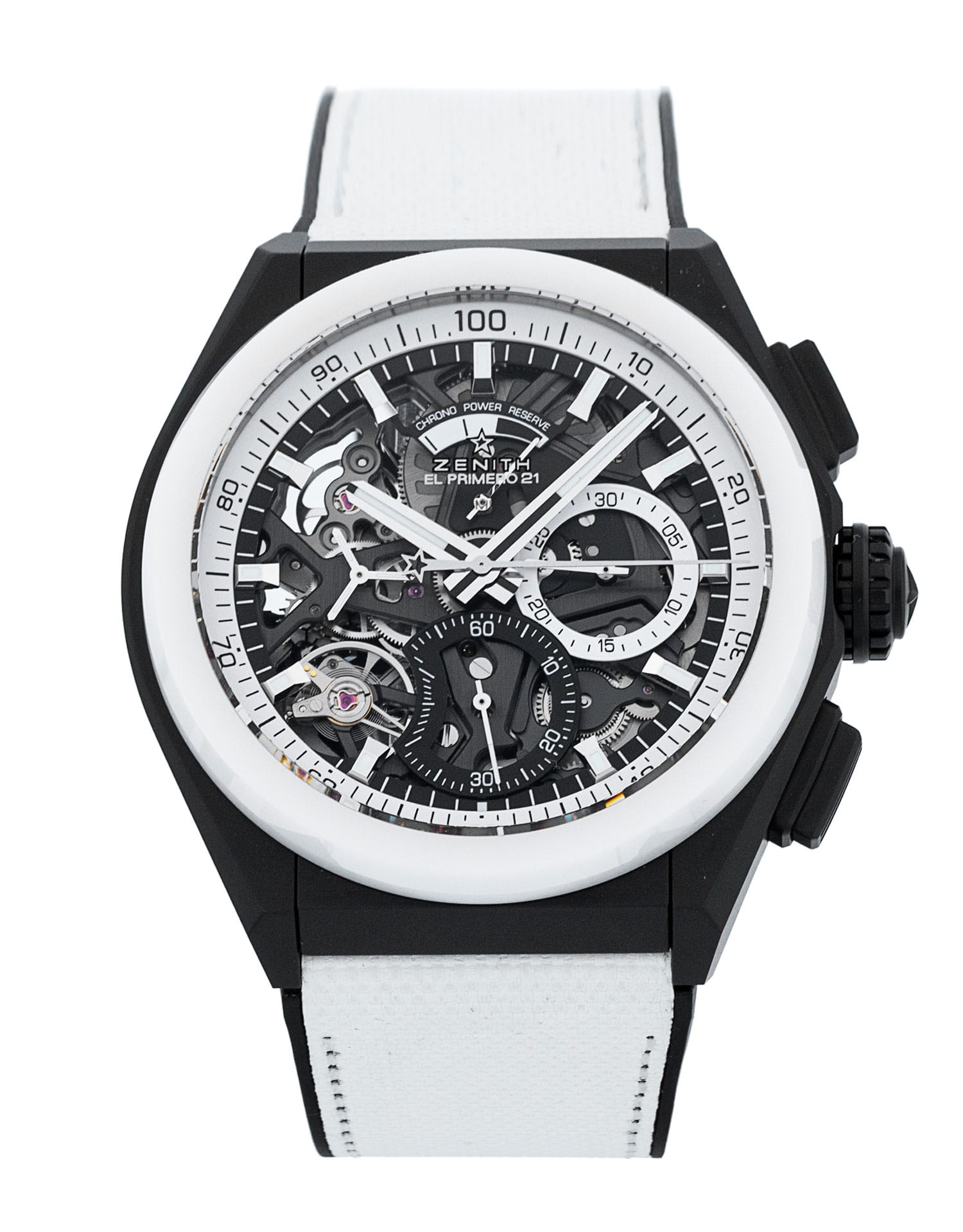 This Zenith Defy 49.9007.9004/11.R923 has a skeleton dial and a rubber strap. This Zenith has undergone a thorough inspection of water resistance, accuracy, functionality and condition to determine the level of reconditioning required to meet our strict standards. It has also been referenced against technical documents and manufacturer records where available to ensure authenticity and a clean history. All our watches have a 24-month warranty for your peace of mind.